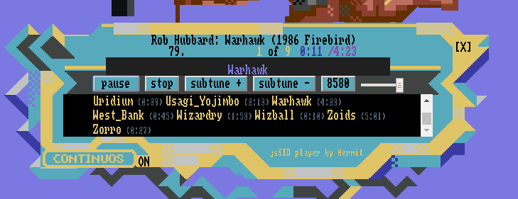 The quality im saw in flash Sid player was no where good as a real windows sid player, so im converted them to full MP3 instead in max quality as possible.Also Java is going not being in browsers that more, except recently in Denmark.... it's a different story.Yes, I did see the repeat tiles in top window. Property they "shadow" tiles could just been removed. But it's still do the job and as least on a ds screen.The MP3 player I'm use is a plugin I'm found to Wordpress. I'm checking tomorrow the plugin.