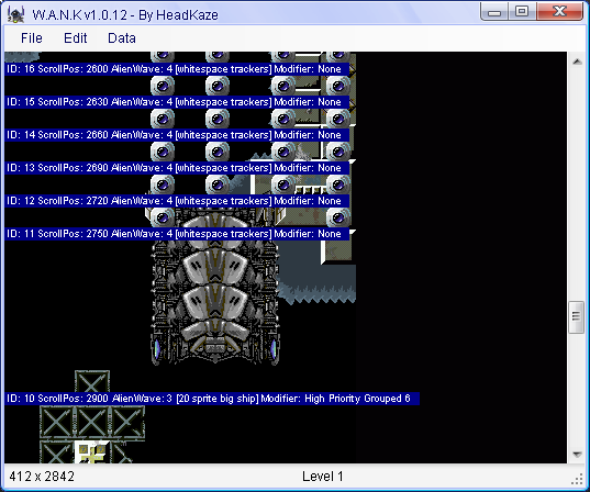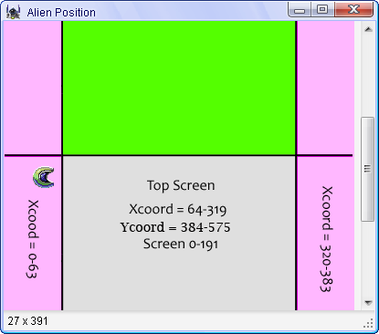 The boxes in the main view are 160 pixels too low, as the top point in the map at the moment is 0, when the scroll stops in game it is 160. the values stored within the alienlevel boxes is fine, they just need to be displayed as if the first location on Y was 160