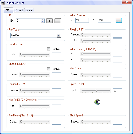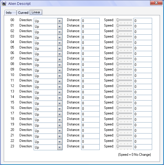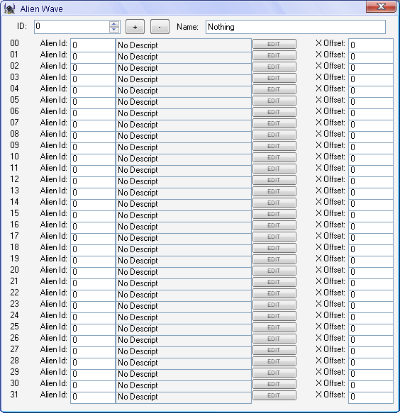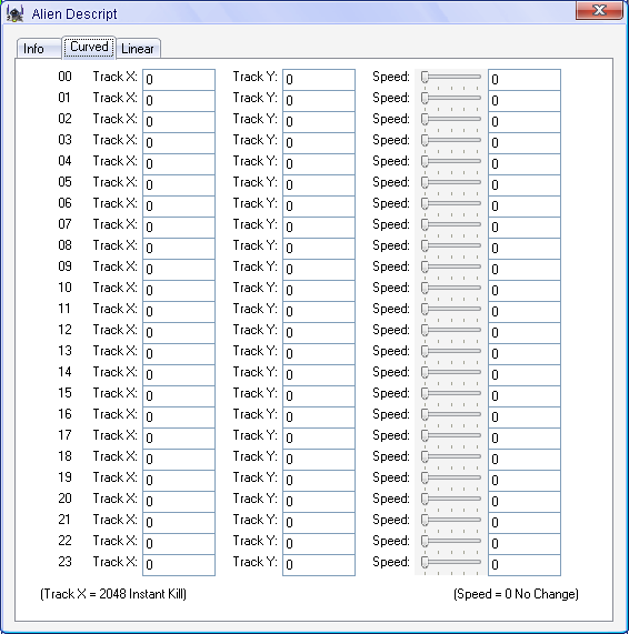 ok, in the alienwave... the high word (top 16 bits) of the "alienDescript" to be initialised, are used as an X offset.. This way you can set an alien to init at 0,0 and offset it across the screen. this does not modify any tracking points, but i may add that..?
