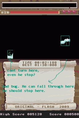In "Where's the hyperspace button?": 3-4 times I could not jump on the circle formed platform after jumped on it from the start point. It does not happens each time and not sure why. When it happens he would just walk right, falling and then die. Not sure it by design or a bug.