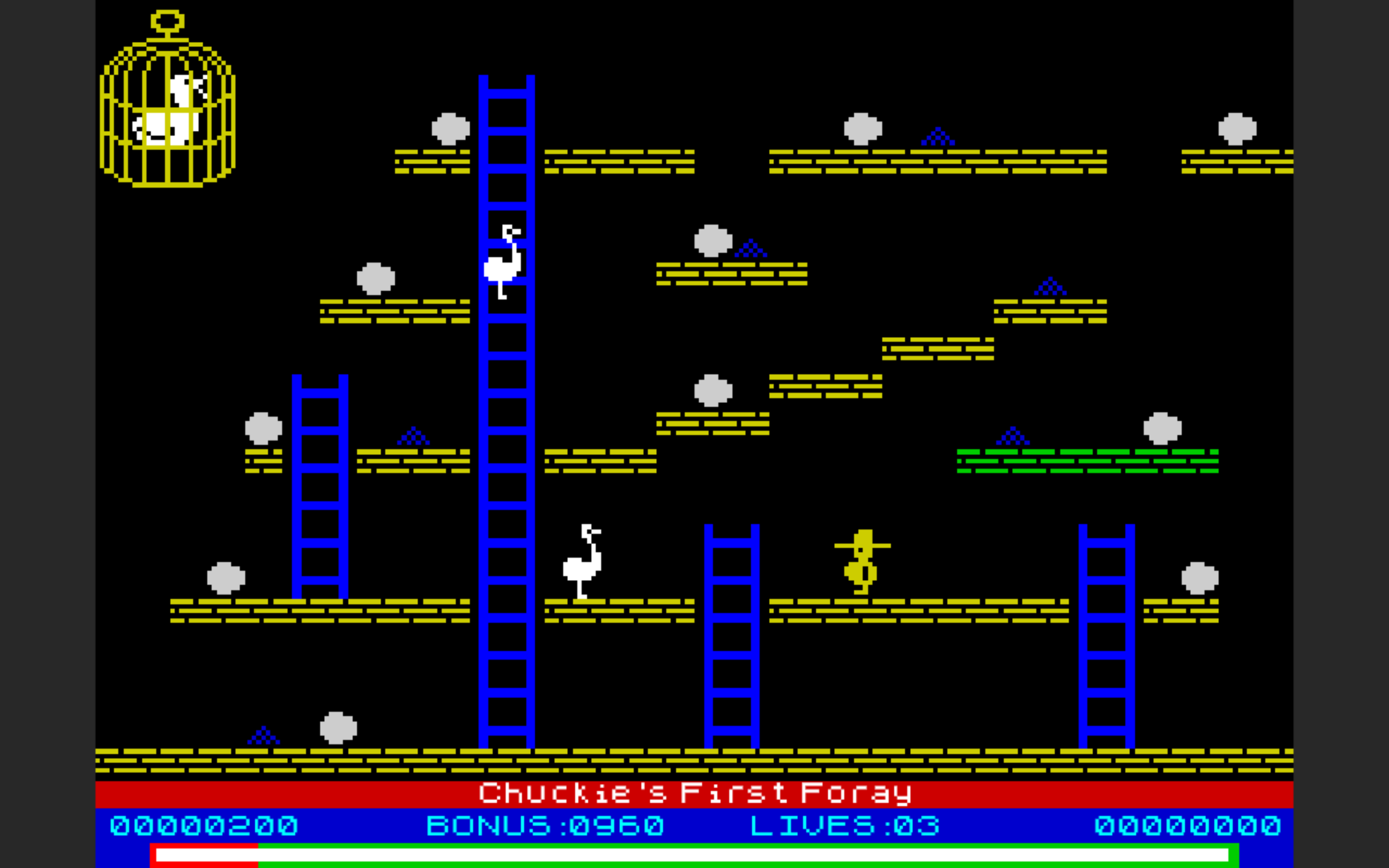 Not sure about the chuckie egg one either. In the original the timer was text based. Should it be text or the current one? Also, it could do with the little hats for lives display as well.