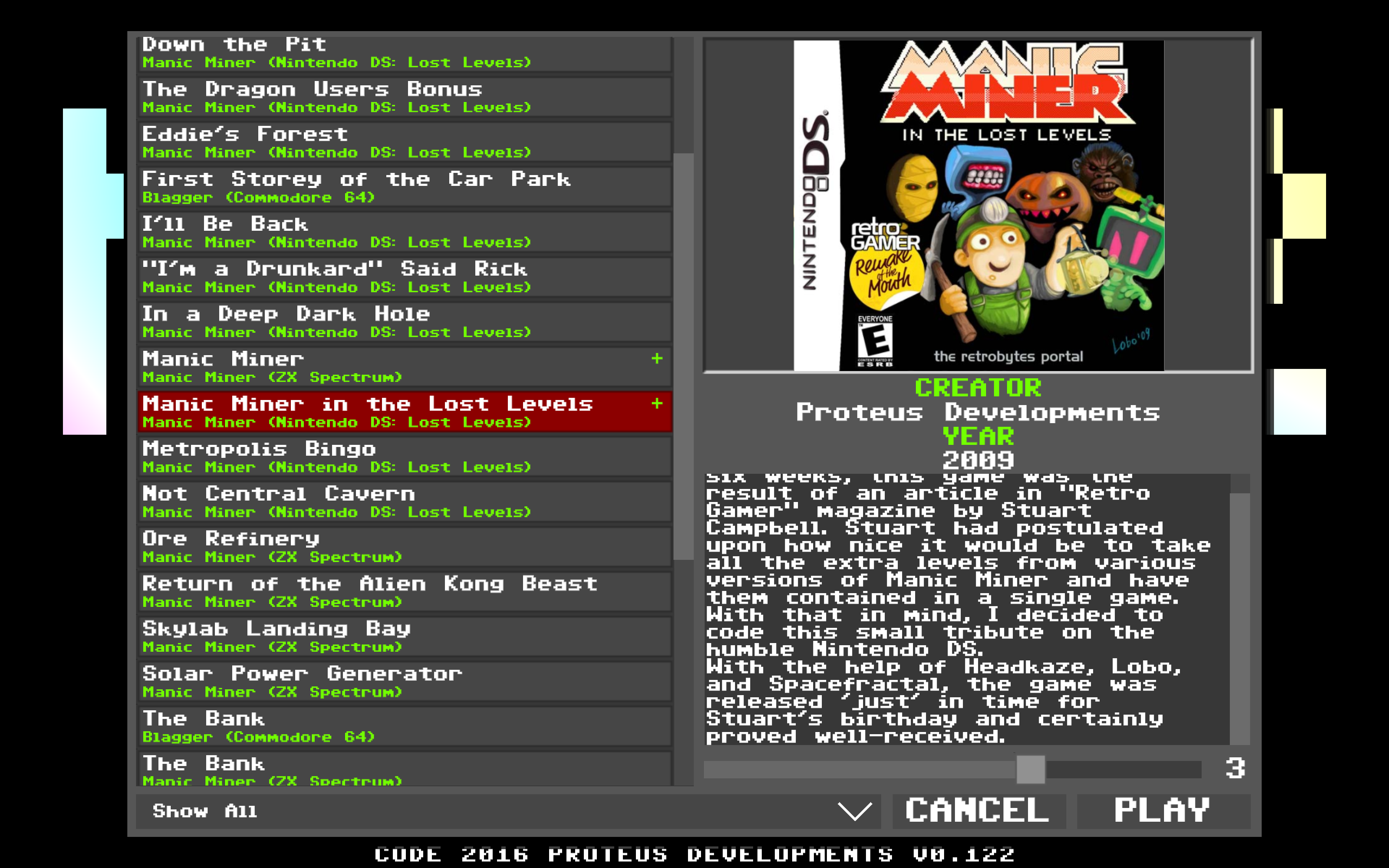 In leu of that, decided it is worth posting some more shots. All levels and groups of levels are now stored as simple single files (thanks for the info there HK). All levels do not need to rely on the internal graphics and you can freely change many of the graphics using your own image files. Levels can be combined into single files much like Balders (though the code to do it within the editor still needs adding). From the shots you can see a couple of multi level games signified by the little + in the list.