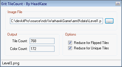This program is for graphics artists to get a tile and color count for an image using grit. It has a friendly GUI to make it easier.