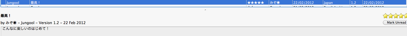 This is the wrong thread, but I feel like a bit of a fool for recommending Jungool to people here because they can't even see it listed, let alone buy it. My fault, I know, but not being an iPerson, I have little idea how the whole thing works. Seems to me that this is an ideal market for a bright roundel platformer, most gamers here still like that kind of thing. As I said before, if it's a language problem or similar, I really appreciated the other games (and local friends and acquaintances particularly liked the visual style of MMtLL, although several complained in terms like 'It's not Mario'), so if it only takes time within reason, will help if I can.