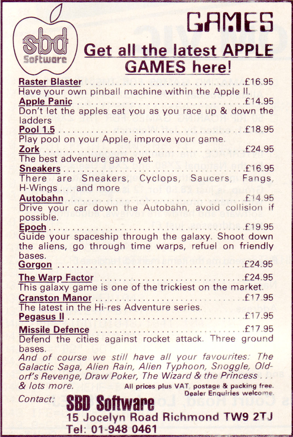 | SBD Software: Get all your Apple games here (1981) |